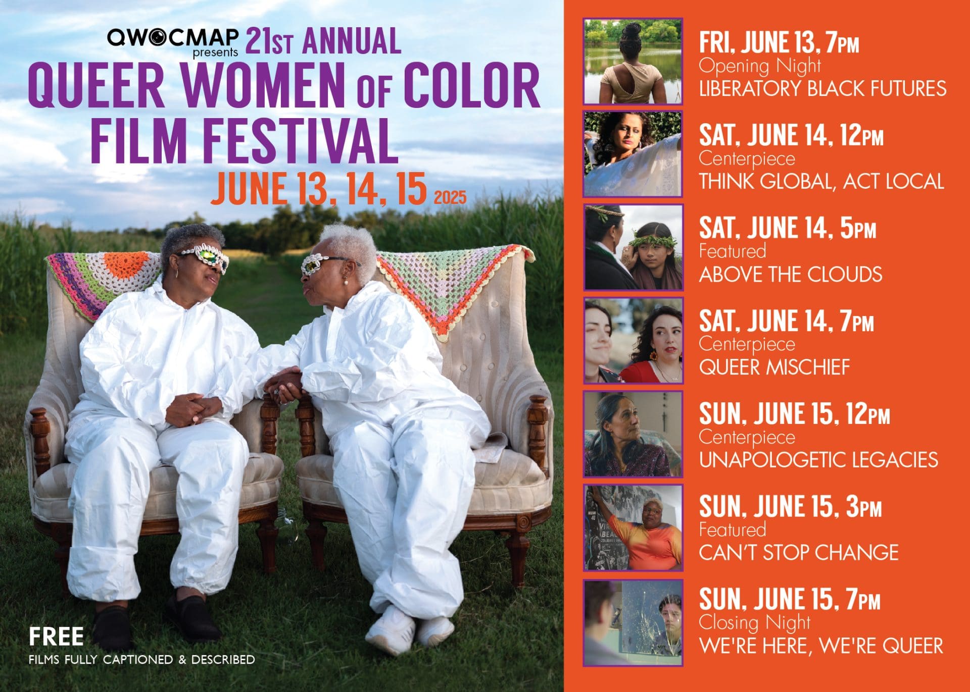 We’re proud to partner with QWOCMAP for their 21st annual International Queer Women of Color Film Festival! This year’s Festival Focus – FIERCE DETERMINATION – showcases 49 films across seven screenings that spark creativity, inspire intergenerational connections, and uplift LBTQIA+ BIPOC storytelling from around the world.
