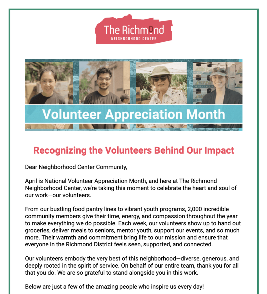 food pantry, food security, volunteer, volunteersRead our latest newsletter Sign up to our e-news to stay in the loop with The Richmond Neighborhood Center